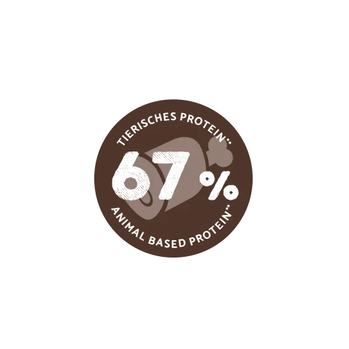 Unser reichhaltiges Qualitätsfutter für adulte Hunde steht für eine bedarfsgerechte Ernährung mit 53 % Frischfleisch und frischem Fisch und einem Anteil von 67 % tierischem Protein am Gesamtprotein. Eine echte Delikatesse für Deinen anspruchsvollen Gourmethund im erwachsenen Alter.