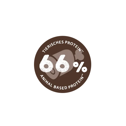 Unser reichhaltiges Qualitätsfutter für Hundekinder steht für eine bedarfsgerechte Ernährung mit 50 % Frischfleisch und einem Anteil von 66 % tierischem Protein am Gesamtprotein. Ein echter Gaumenschmaus für junge Fleischliebhaber, die mal ganz groß werden wollen.