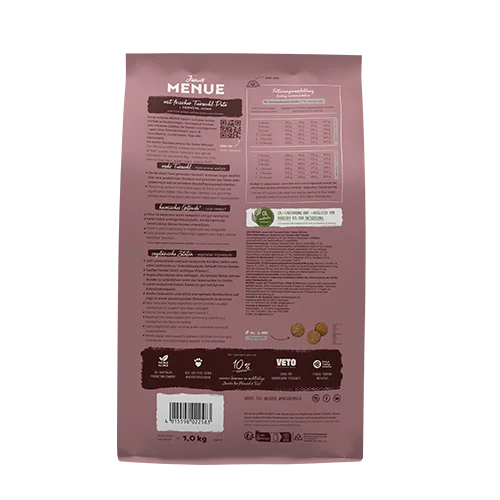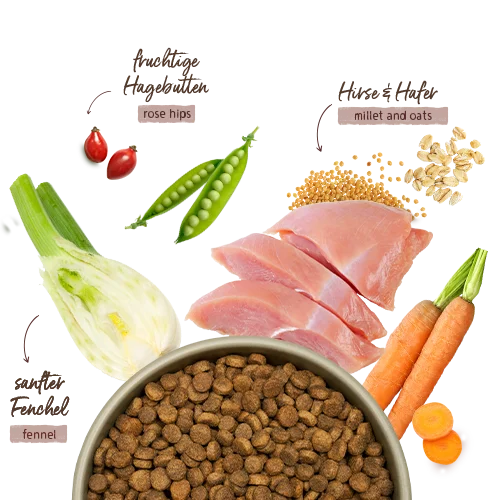 In Kombination mit dem bunten Mix an Obst und Gemüse, wie fruchtigen Hagebutten, zarten Karotten und sanftem Fenchel sowie dem feinen Lachsöl aus eigener Herstellung liefert dieses hochwertige Alleinfutter Deinem tapsigen Junghund alles, was er für ein langes und vitales Hundeleben braucht.