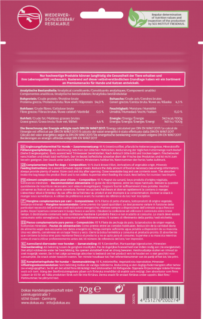 Zusammensetzung: 93 % Entenbrustfilet, pflanzliche Nebenerzeugnisse, Mineralstoffe