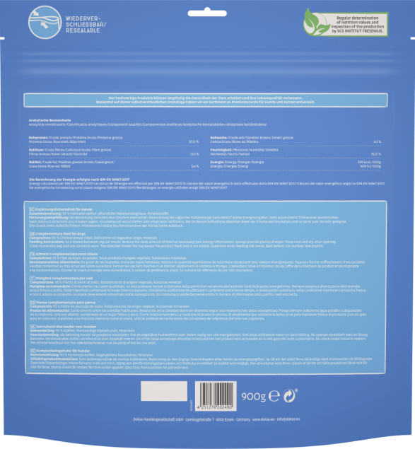 Zusammensetzung: 93 % Hühnerbrustfilet, pflanzliche Nebenerzeugnisse, Mineralstoffe