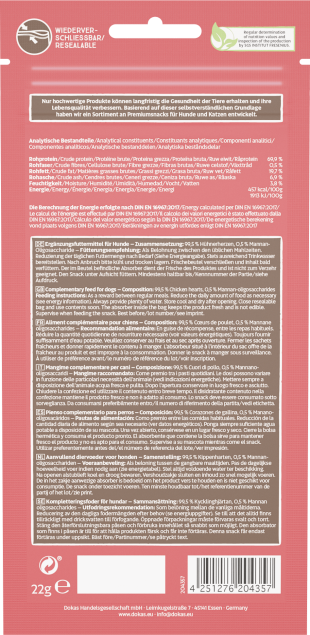 Zusammensetzung: 99,5% Hühnerherzen, 0,5% Mannan-Oligosaccharide