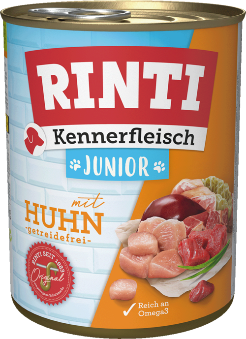 12 x Rinti Kennerfleisch Junior - mit Huhn in der Dose - 400 / 800g
